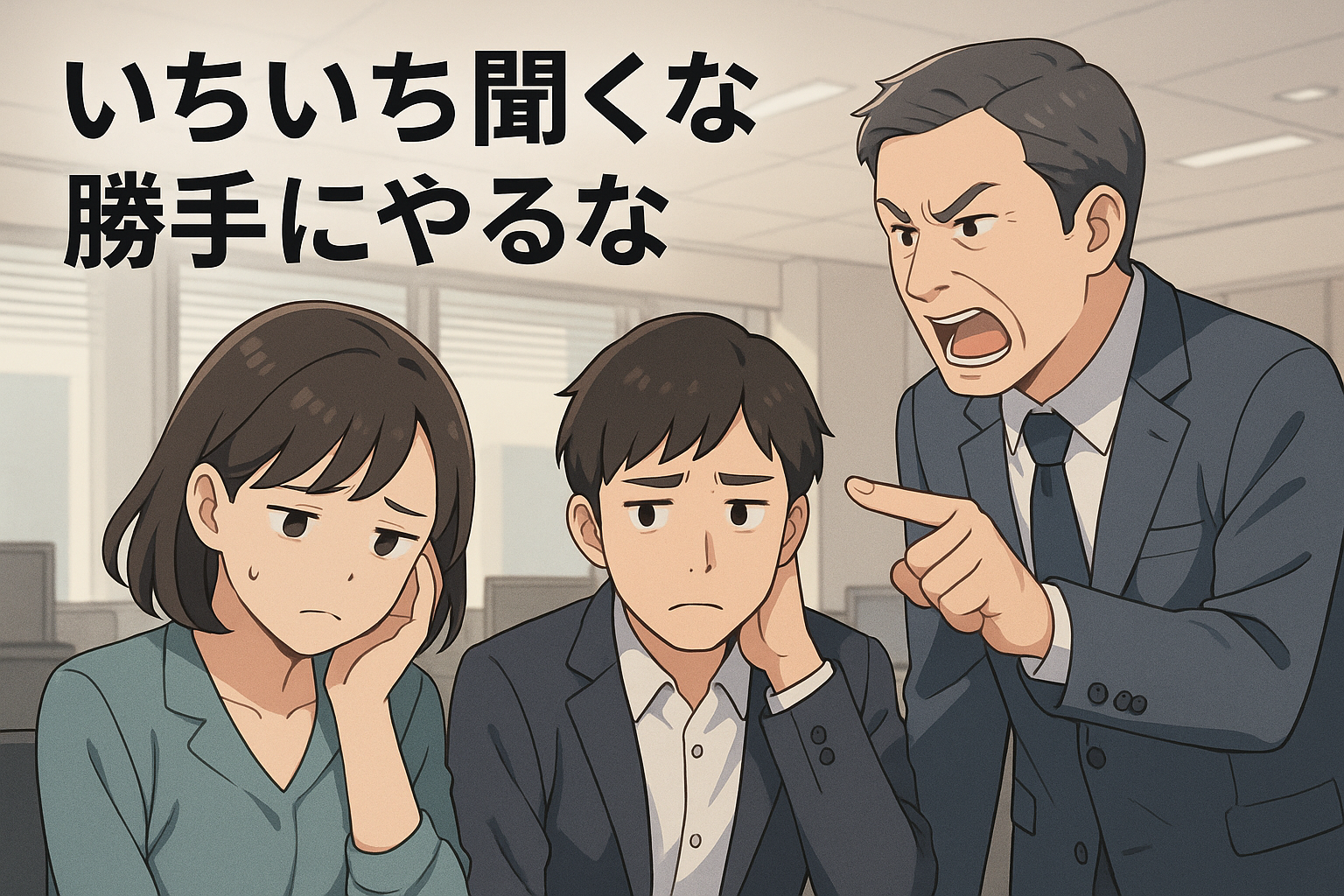 この記事では「いちいち聞くな勝手にやるな」と言う30代中堅上司の人物像や心理、理不尽な具体ケースと末路、そして対処法まで解説します。