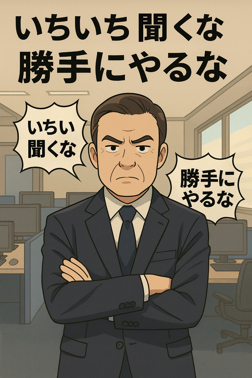 結果として「勝手にやるな」と否定しながらも、明確な指示を出さず「いちいち聞くな」と突き放す矛盾が生まれます。